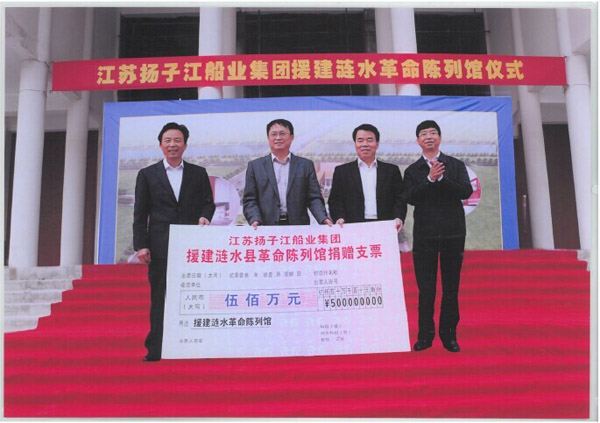On September 13th, 2012, Jiangsu Yangzijiang Shipbuilding Group Ltd. sponsored RMB5 million to the Ji’an Professional Middle School in Jiangxi province.