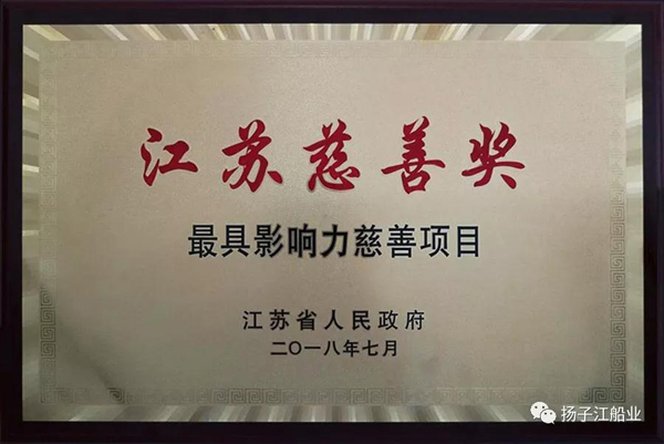 “Jiangsu Charity Award” is sponsored and organized by Jiangsu Provincial People''''''''s Government and Jiangsu Provincial Department of civil affairs, the "Jiangsu Charity Award" is held every two years and is the highest award of Jiangsu Province in the field of charity.The award aims to implement the “CHARITY LAW” and commend the efforts of all sectors of society to give love and repay the society.